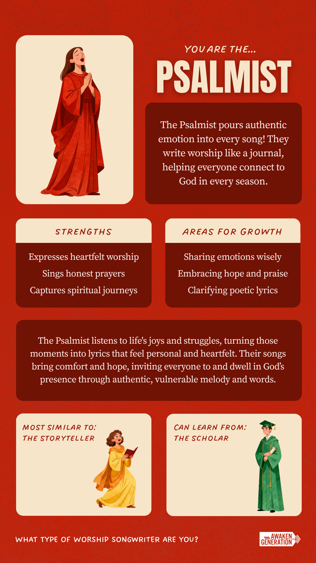 Psalmists translate intimate experiences & emotions into poetic worship that invites others into genuine encounter with God.